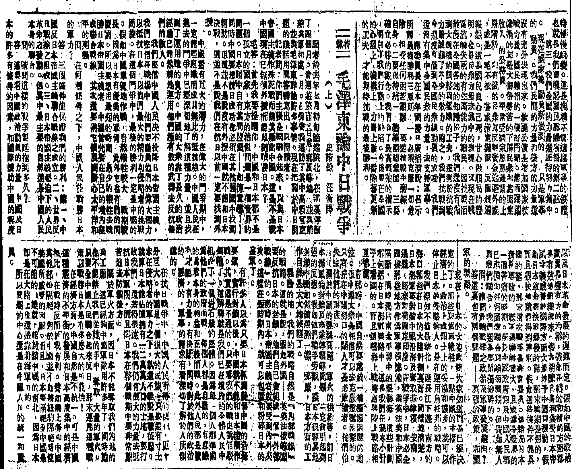 图2.1937年9月6日《云南日报·画刊》第6期刊载的龙云与周恩来、朱德、叶剑英在西安机场的合影(上);1937年10月30日《云南日报》刊载的《毛泽东论中日战争》一文(下)